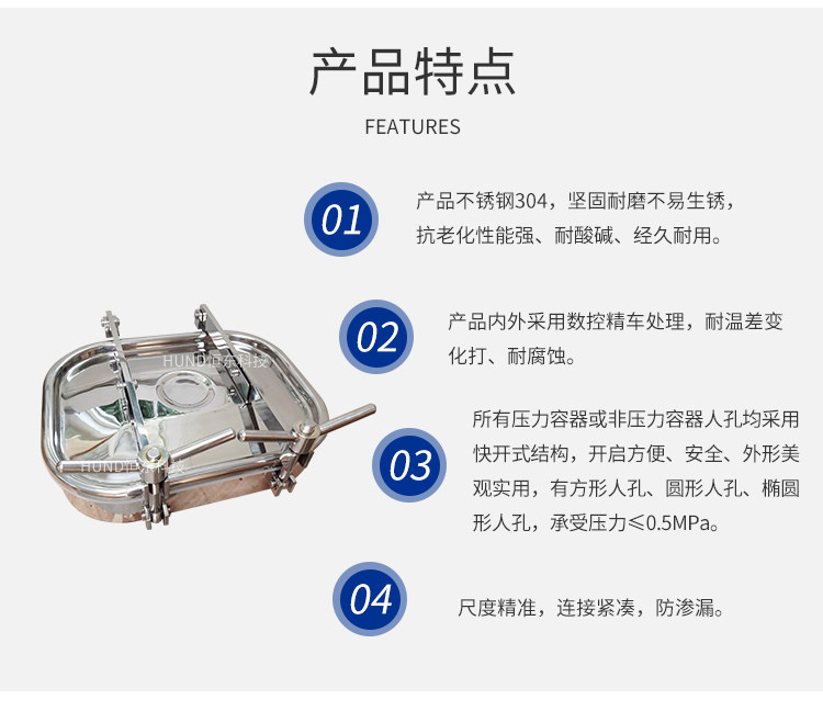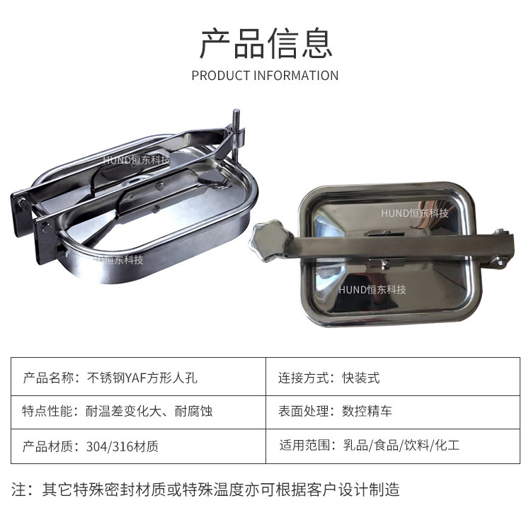 压力容器的人也均采用快开式结构,开启方便、安全,外形实用美观,有椭圆、圆形、四方形、承受压力0.05-0.5Mpa,材质为304或SUS316L。